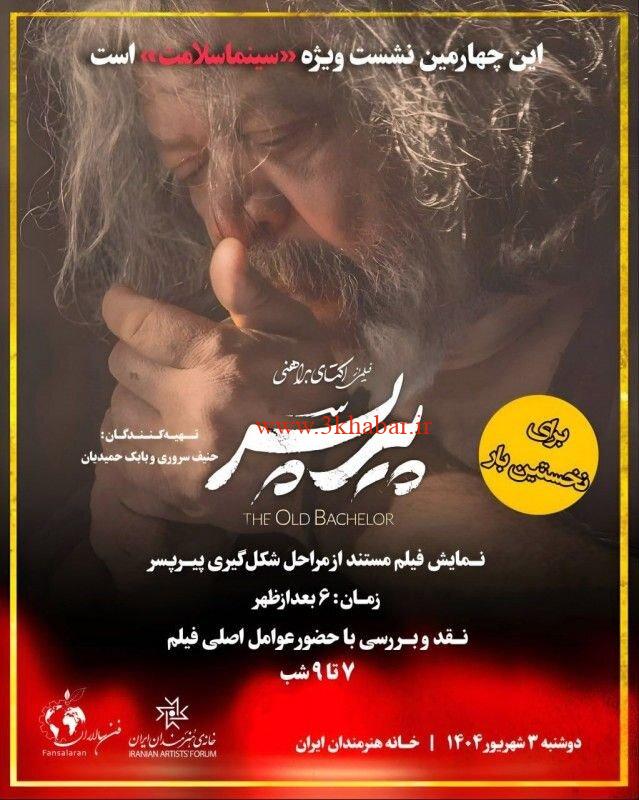 به گزارش پایگاه خبری ۳خبر، چهارمین برنامه ماهانه «سینما سلامت» در سینماتک خانه هنرمندان ایران به نمایش یک مستند اختصاص یافته است که مراحل شکلگیری فیلم سینمایی پرفروش و پرمخاطب «پیرپسر» ساخته اکتای براهنی را روایت میکند.